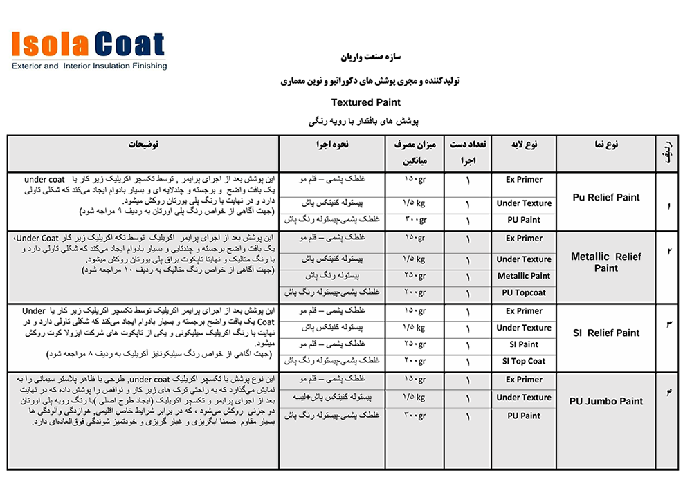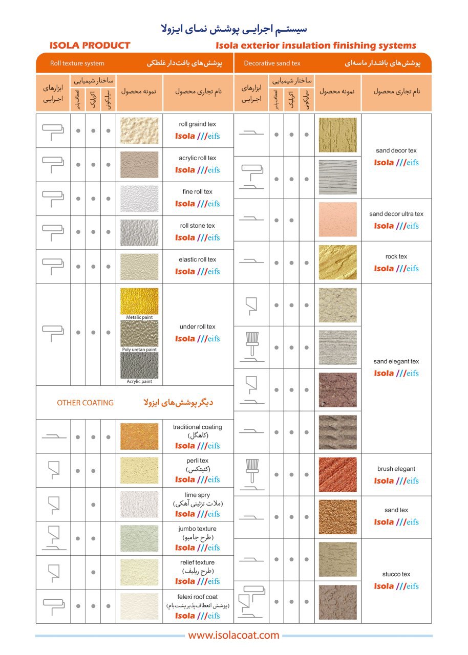 کاتالوگ پوشش های بافت دار با رویه رنگی