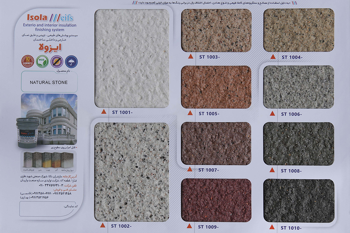 پلاستر پوششی تشکیل شده از سنگ ، ماسه و کو پلیمر های اکریلیک و سیلیکونی که بدلیل داشتن بافت بسیار طبیعی و تیشه ای ، بسیار با شکوه در نمای ساختمان شما ظاهر شده و یک نمای زیبا را به ارمغان میاورد .
